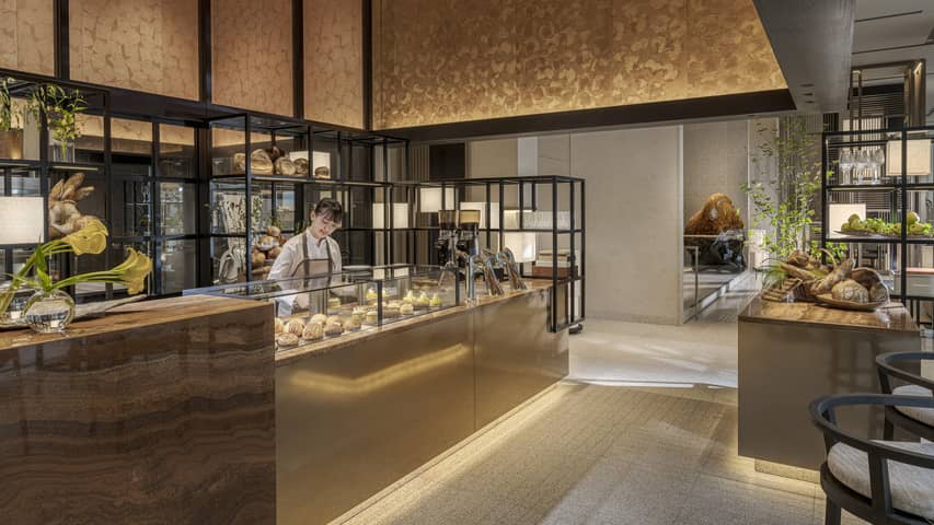1階のロビーに隣接するベーカリーショップ「ファリーヌ」では、季節のペストリーや焼き立てパン、ケーキなどをテイクアウトのコーヒーとともにご用意しております。